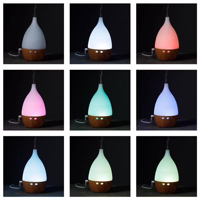 Aroma Diffusern använder ultraljudsvibrationer som tyst skapar en tunn dimma av vatten och eterisk olja. Ingen värme eller fläkt används i denna process. Den kan skifta i färg och även användas som en vanlig luftfuktare.
