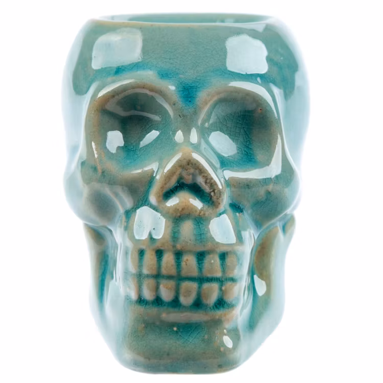 Dödskalle Mini Turkos keramik, Aromalampa 89 kr I lager. Lägg i korgen Produktbeskrivning Recensioner Dödskalle Mini Turkos keramikAromalampaMaterial: KeramikStorlek: Höjd 8 cm