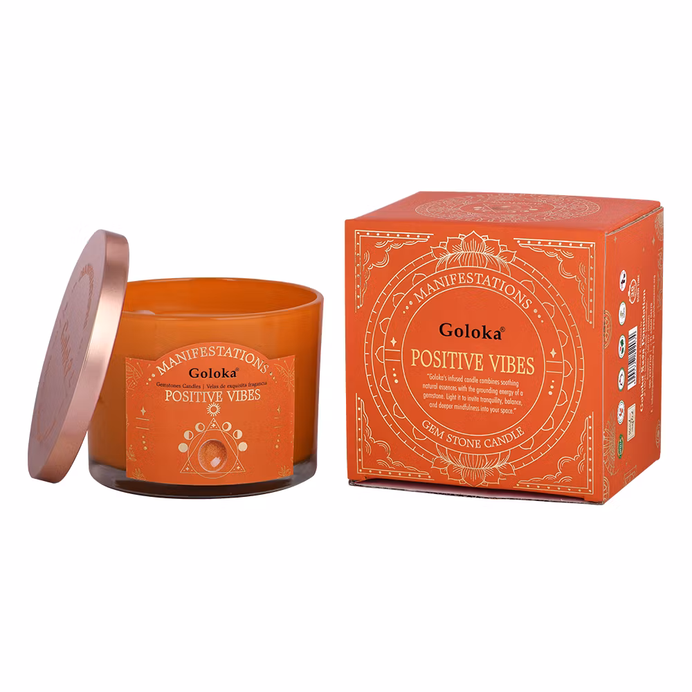 Vackert doftljus med kristall i glasburk med lock. Med en frisk och ren doft av mynta som skapar klarhet i tanken och verkar upplyftande för sinnet. Ljuset kompletteras av solsten – en kristall med ljus, varm och glad energi.