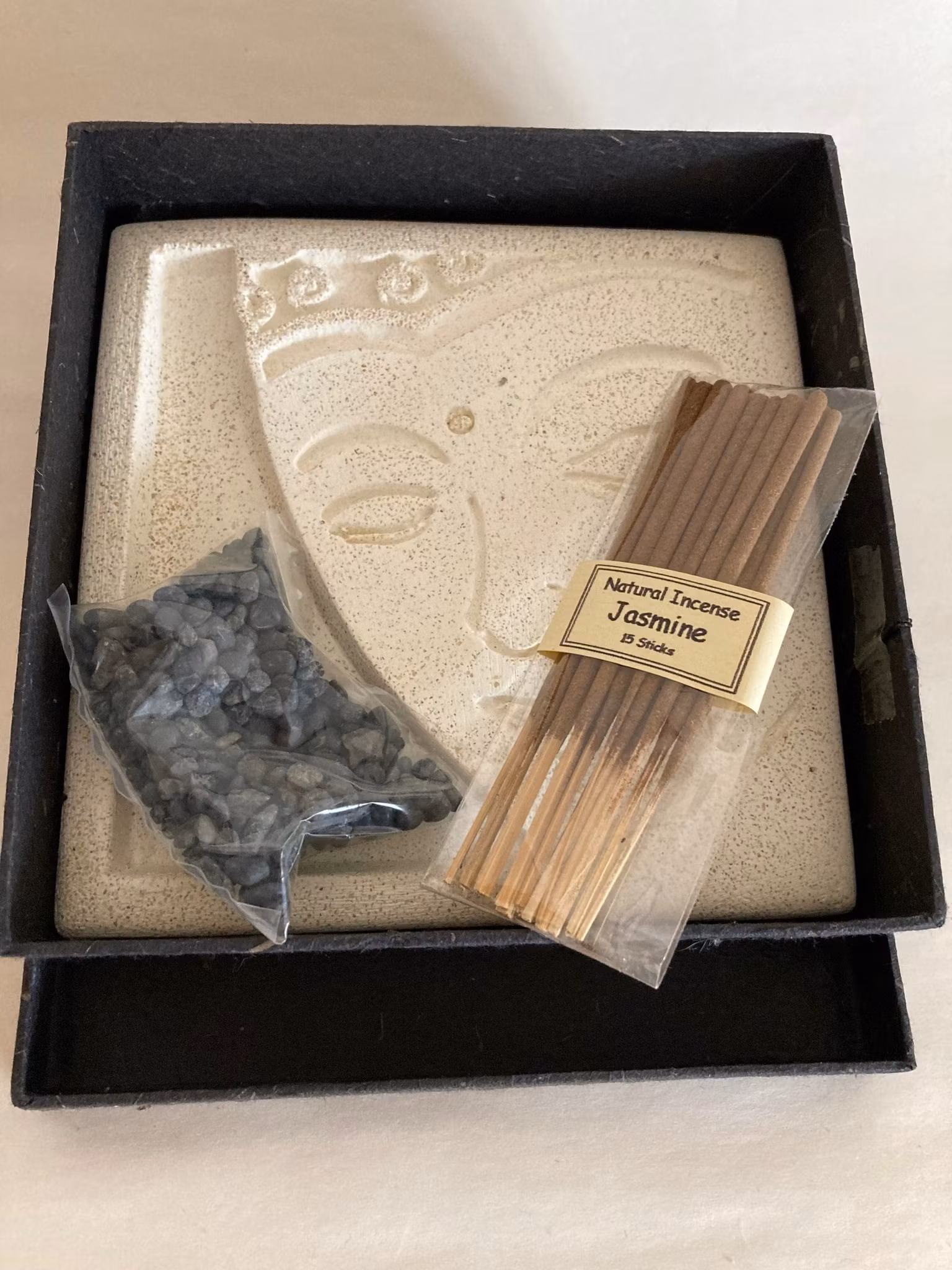 Buddha face, rökelsehållare - Utgående sortiment 179 kr 119 kr I lager. Lägg i korgen Produktbeskrivning Recensioner Buddha Face RökelsehållareRökelsehållare med stenar och 15 medföljande jasmine-rökelser. Passar till: Rökelsehållare för rökelsestickor med bambupinneStorlek: 13 x 13 cm