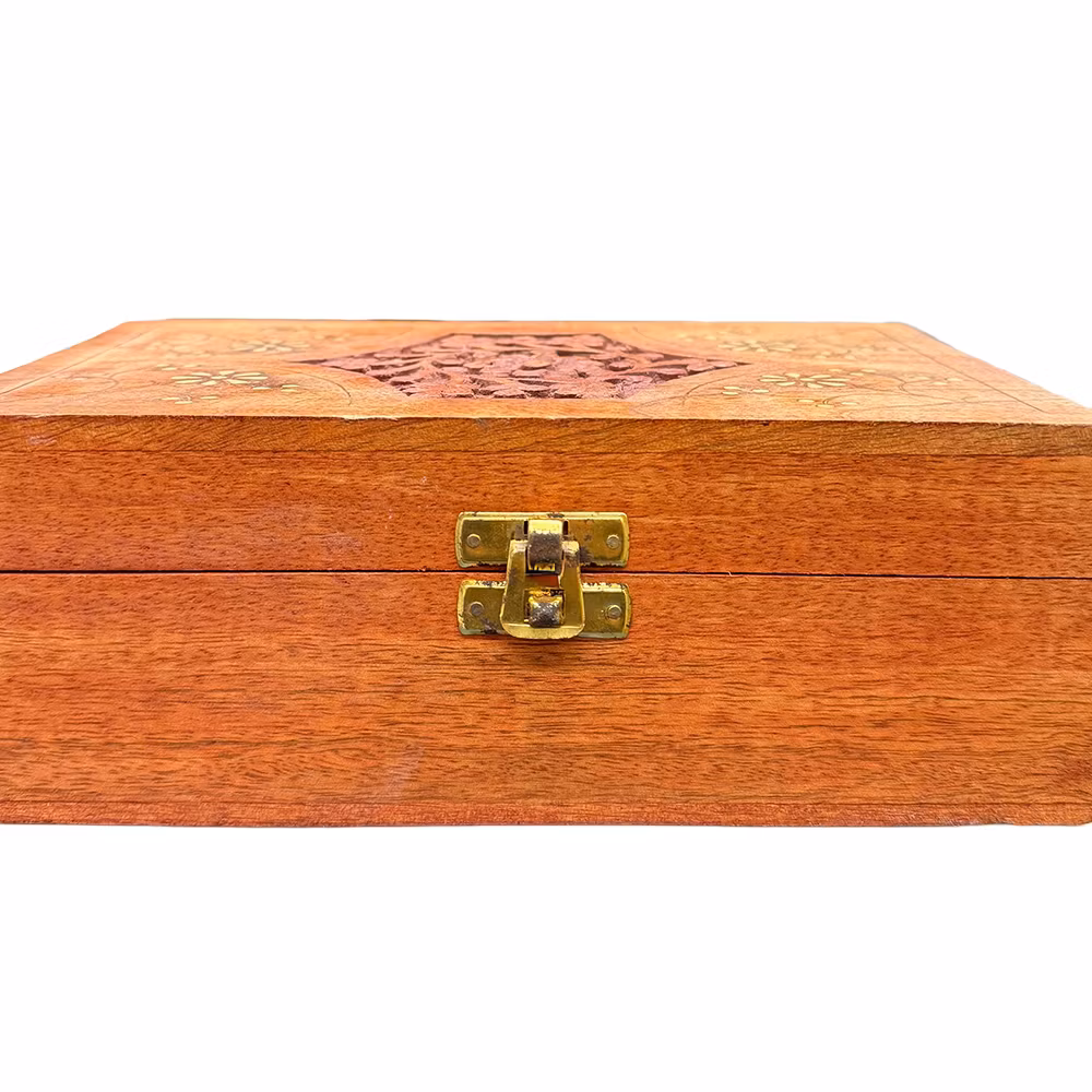 Obeservera att lådorna utgår från standardmått, det kan därför finnas vissa oljor som inte får plats. De som får plats är oljorna från Eden, Ancient Wisdom & Goloka. De som inte får plats är de från Green Tree Song of India & Interlam.