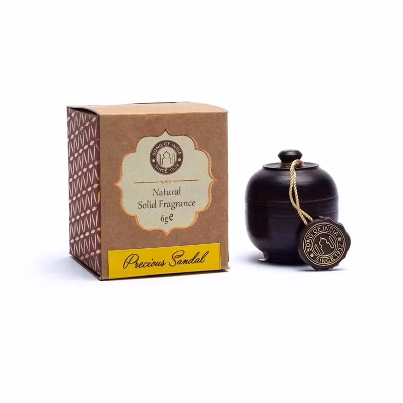 Solid doftkräm i vacker handgjord burk av rosenträ. Varje burk är unik och de kan därför variera i utseende. Solida doftkrämer är bland de tidigaste parfymer man känner till historiskt.