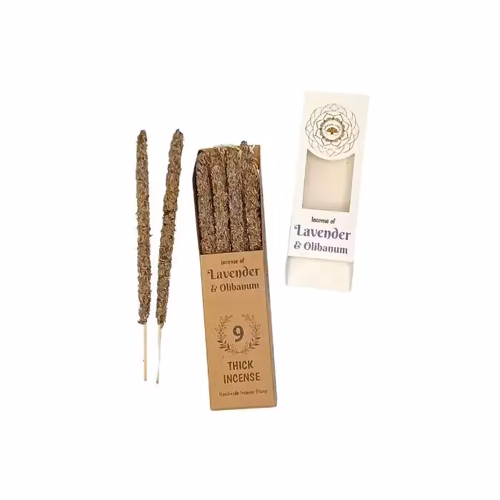 Handgjorda, tjocka rökelsepinnar av torkade örter, blommor, bark och resiner.