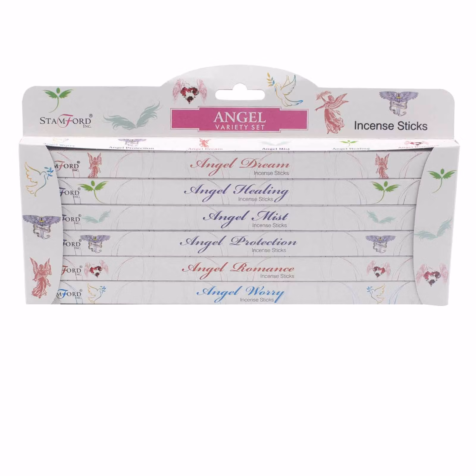 Vilka dofter som finns i förpackningarna: Angel Dream, Angel Healing, Angel Mist, Angel Protection, Angel Romance, Angel Worry.