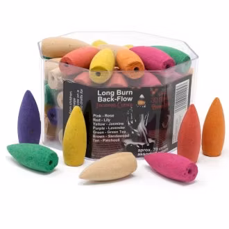 En tub med ca 70 stora rökelser som är anpassade för Backflow.