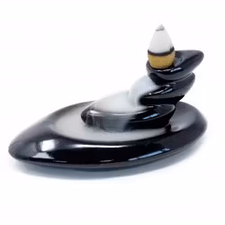 Backflow rökelsebrännare är designad att att skapa ett dramatiskt flöde av rök, som rinner nedför tornet och samlas i skålen nedanför (på sätt som framgår av bilden).