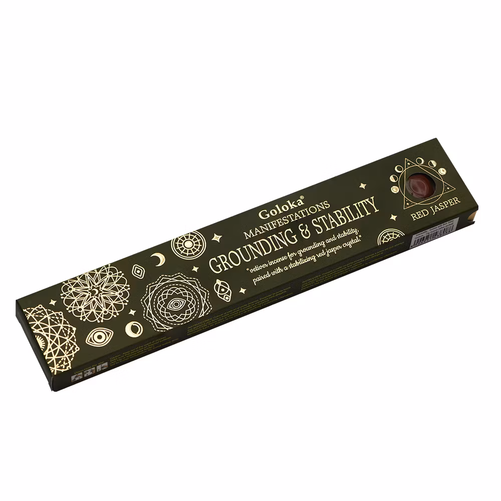 Den grundande doften i rökelsen kommer från vetiver, där det symboliskt nog är själva rötterna som ger den djupa, jordande och kraftfulla doften. Inom aromaterapi används vetiver för att skapa ro och trygghet. Här kombineras rökelsen med röd jaspis – en mångsidig kristall som både jordar och helar.