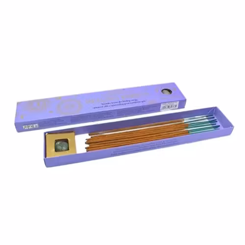 Rökelsestickorna är handrullade av naturliga ingredienser med noga utvalda dofter som aromaterapeutiskt harmonierar med kristallens egenskaper. I rökelsen kombineras resin och oljor med blommor, honung och örter för att skapa en naturlig rökelse.