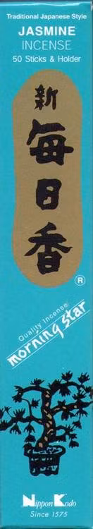 Japansk rökelse. Förpackningen innehåller 20 gr (50 stickor) och en liten keramikhållare. Brinntid ca 25 min.