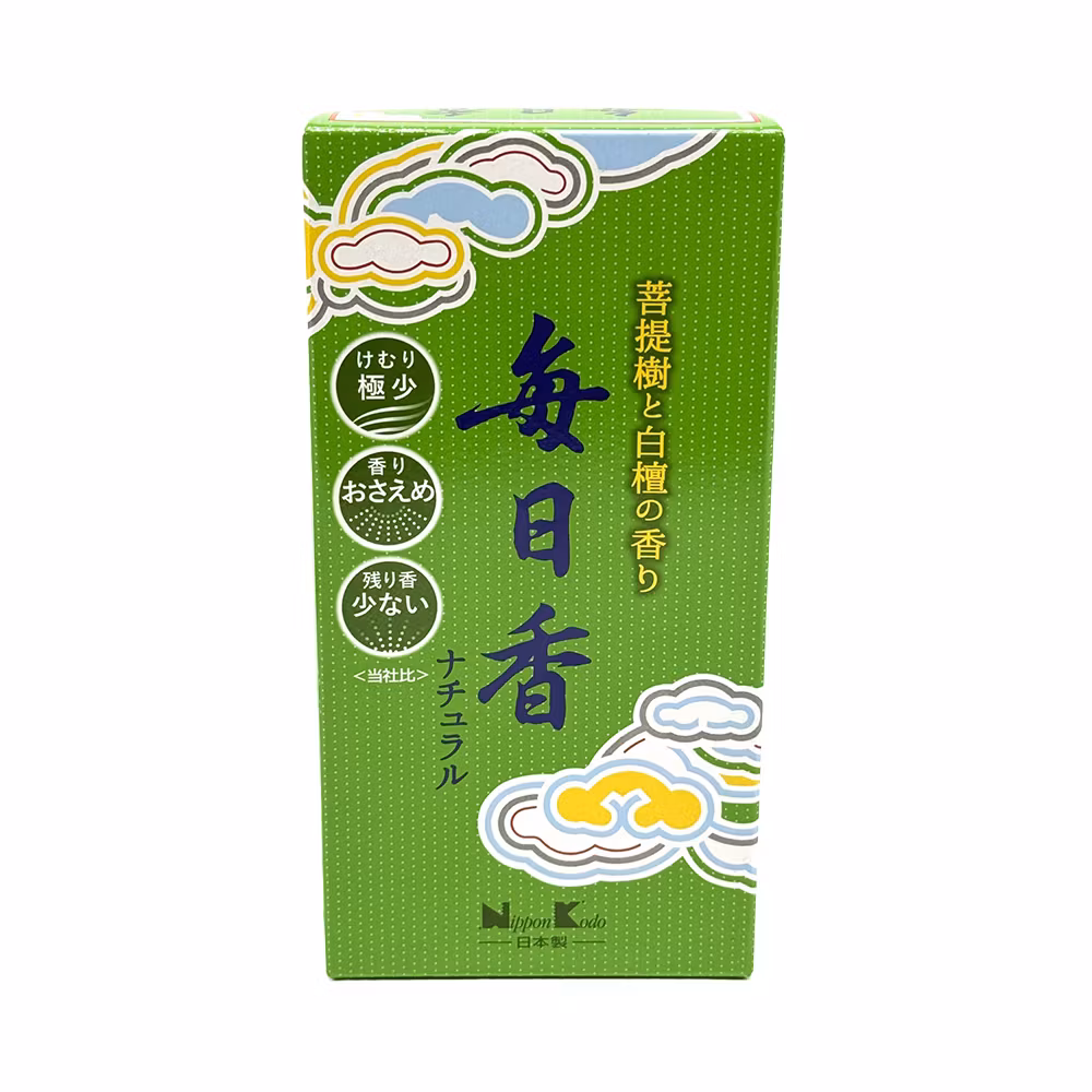 Mainichi-Koh är Japans mest sålda och uppskattade rökelse sedan 1912. Den tillverkas enligt tradition med bas av sandelträ, här harmoniskt kombinerat med lindblom för en mjuk, balanserad och tidlös doft. Japansk rökelse.