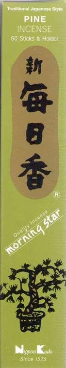 Japansk rökelse. Förpackningen innehåller 20 gr (50 stickor) och en liten keramikhållare. Brinntid ca 25 min.
