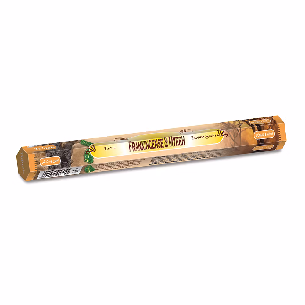 Rökelsepinnar med en djup blandning av kryddig myrra och klar, balsamisk frankincense.
