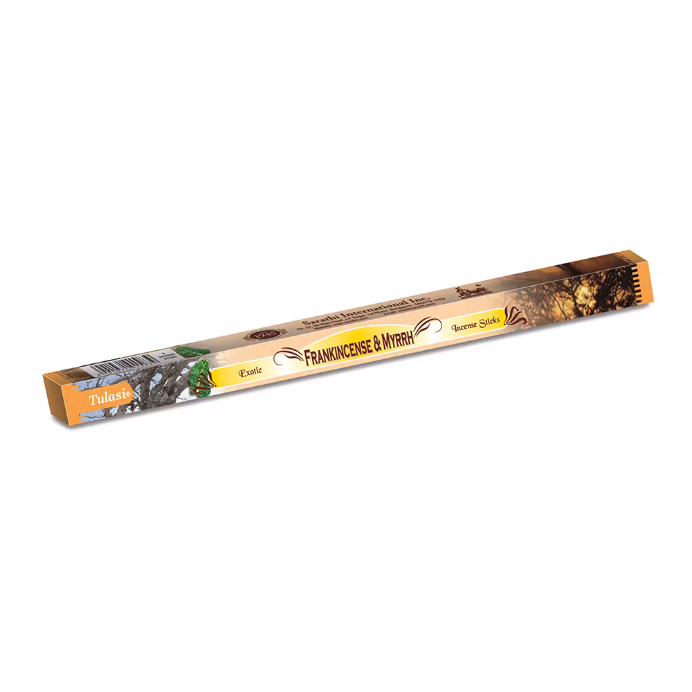 Rökelsepinnar med en djup blandning av kryddig myrra och klar, balsamisk frankincense.