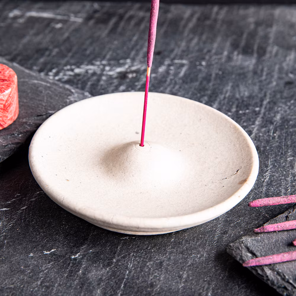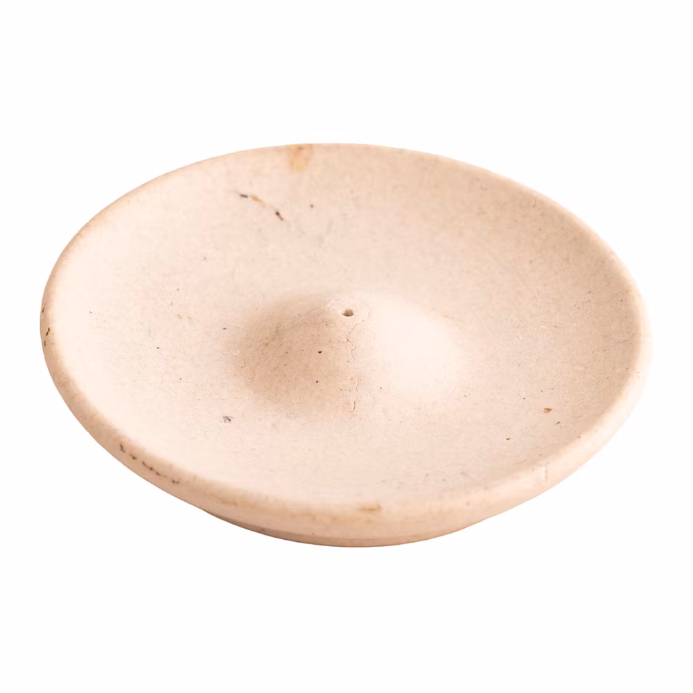 En enkel och stilren rökelsehållare i en sand/naturfärg. Passar rökelser med bambupinne.