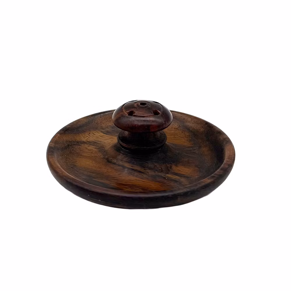 Enkel och stilren rökelsehållare i trä med hål till 5st rökelsepinnar.