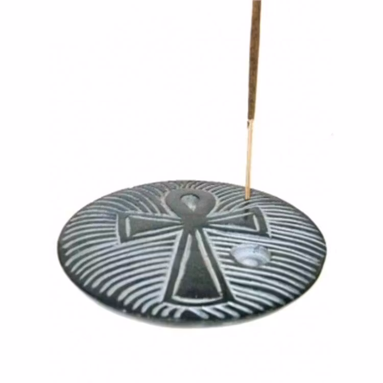 En fin och stilren rökelsehållare i täljsten med Ankh-tecken.
