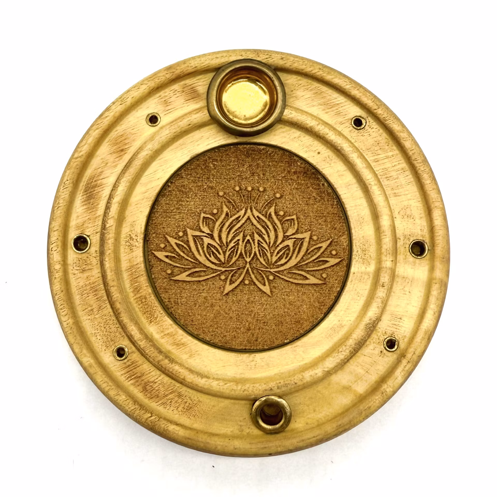 Rund rökelsehållare med Lotus, Trä