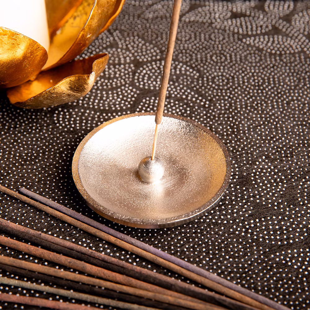 Snygg och stilren rökelsehållare i silver. Hållaren är av metall.
